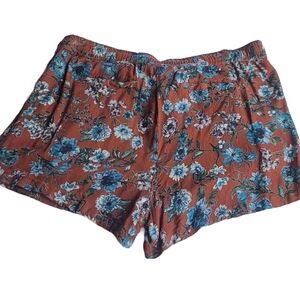Kut from the Kloth ede printed shorts in burnt orange and dark blue, size 10. Stretchy waist band, light weight and perfect for summer.
