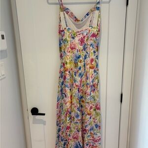 Vibrant watercolour floral design. Features pink, blue, and green tones. Perfect for any occasion. *No tags, but never worn.