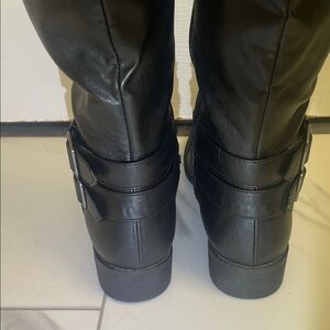 American Eagle Riding Boots Black Knee-High Buckle Details Zippers Sz 9.5