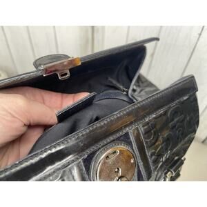 Gucci Horsebit Sherry Line Square Doctor's Bag Handbag Navy Patent Leather