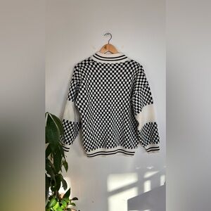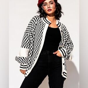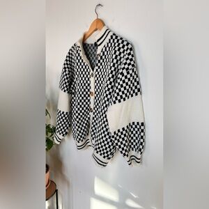 Dressed in LALA Get What I Want Grandpa Cardigan in Checked Black White Size S
