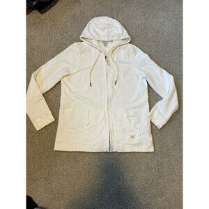 LL Bean Women's Organic Cotton Full-Zip White Hoodie Sweatshirt