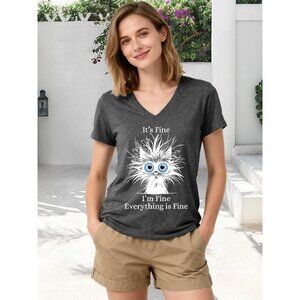 Women's Cotton Blend V Neck T-Shirt — Cute Cat Graphic Casual Comfort.