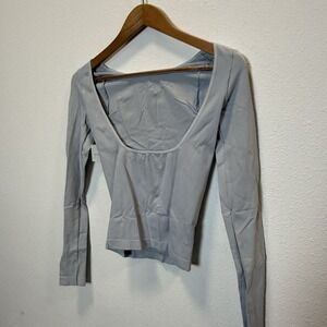 Intimately Free People Low Back Seamless Long Sleeve Lunar Rock Grey M/L NWT