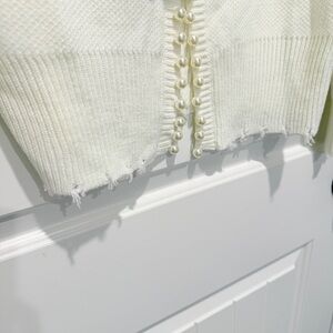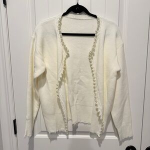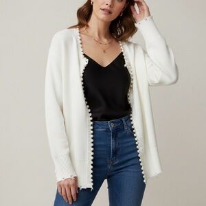 White Open-Front Cardigan with Pearls and distressing