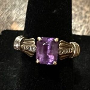Vintage 14k Gold Amethyst Ring with diamond accents 5.69g Size 6-6.5
