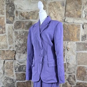 Elegant purple women's suit set perfect for professional and formal occasions. Features a tailored blazer and matching pants for a sophisticated look.