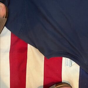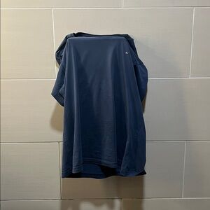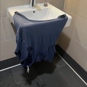 Dark blue/navy t-shirt. Size M, by Tommy Hilfiger. Fits a bit larger (I’m 6’4). Ideal for everyday wear, like the gym or hike. Worn out on the shoulders from my use. One of my favorite shirts! Definitely hard to let it go, but I can’t wear it any more.