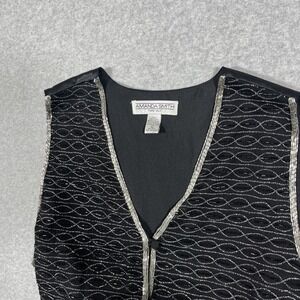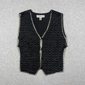 Amanda Smith L Pure Silk Black Beaded Dressy Vest Button Fairygoth Gothic Fairy