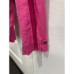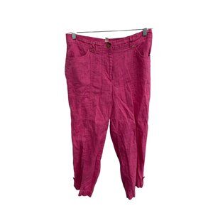 linen, cropped, capri, pink cropped pants, linen pants women, summer pants, casual pink trousers, JM Collection pants, size 8 linen pants, pink casual trousers, button cuff pants, women's pink linen, cuff pants, breathable linen