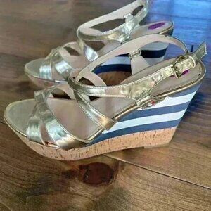 Amazing nautical wedge!! Navy + White stripe/cork