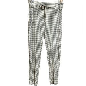Betabrand Belted Plaid High Waist Skinny Leg Dress Pant Size Medium