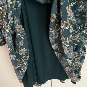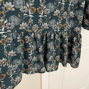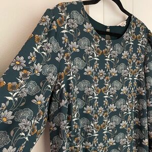Caslon Long Sleeve Crewneck A-Line Shift Midi Dress, Green Yellow Floral Size 3X