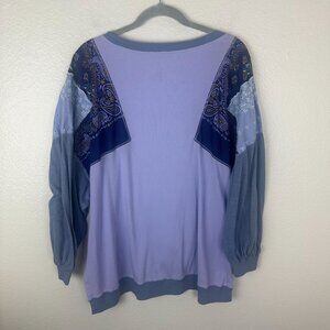 We the Free Feelin' It Lavender Blue Patchwork Blouse XL Mixed Media Boho Boxy Oversized
