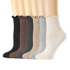 Neutral Set Ruffled Edge Ribbed Ankle Socks 5 Pairs