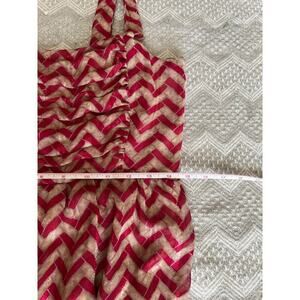 Roberto Verino Strap Midi Dress Raspberry Zigzag Chiffon SZ 8 resort Wear beachy