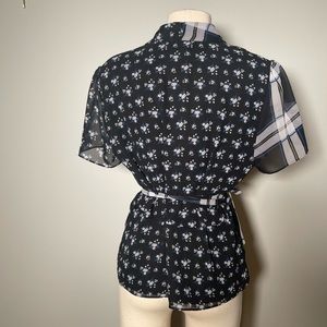 #vincecamuto #wrapblouse #mixedprint #bluetop #workwearstyle #classicstyle #nwot #womenstops #effortlessstyle #polishedlook