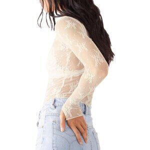 Women's Mesh Lace Long Sleeve Top Sheer Blouse Y2K Fashion Flo...