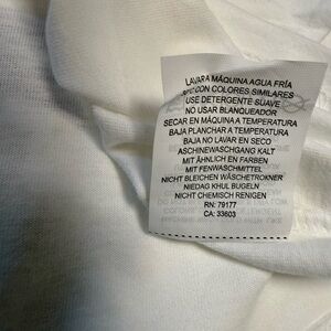 White tee with vibrant Santo Domingo and guitar design. Features palm trees and cityscape. New with tags looks like some discoloration on right back shoulder but could be my eyes, sure it would wash out.