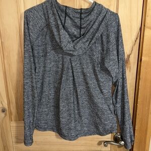 ATHLETA awesome jacket, thumb hole sleeves and two front pockets. Stylish gray zip-up hoodie with a comfortable fit. Perfect for casual wear.