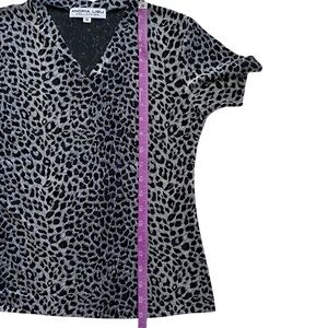 Vintage 90s Andrea Lieu Small Stretchy Black Grey Cheetah V-Neck Top