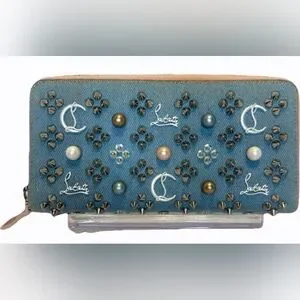 Christian Louboutin Blue Denim Mix Pearl Panettone Continental Wallet