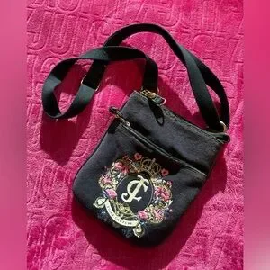 Juicy Couture Black Crossbody Bag Y2K Crest Logo