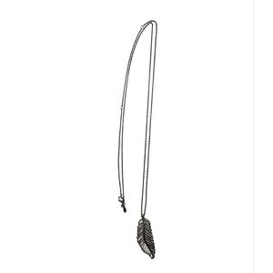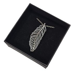 Authentic Pandora sterling silver feather leaf pendant necklace featuring clear cubic zirconia (CZ) accents. Very good pre owned condition with light surface wear consistent with normal use. Long 35" chain makes it perfect for layering or statement wear.