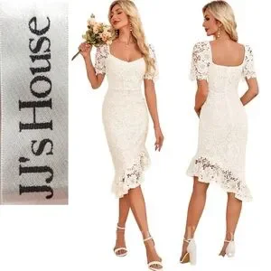 JJ’s House Lace Wedding Dress | Sweetheart Asymmetrical Tea-Length | NWT | Size Small 🤍