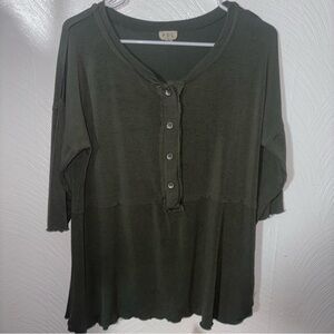 POL Never Felt So Soft Button Oversized Top in Olive Green Size S