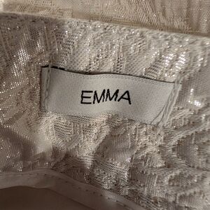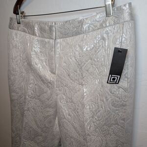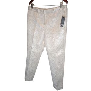 Liz Claiborne Collection Emma Ankle slim straight pants, with a cream color shimmery brocade pattern