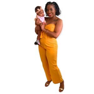 Favlux Fashion Women’s Yellow Sleeveless Tie Front Straight Leg Jumpsuit Large