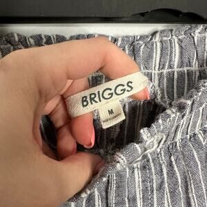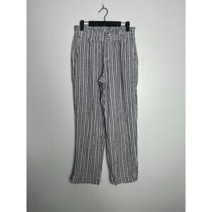 Briggs Women's Linen Blend Pull-On Wide Leg Gray + White Striped Pants Size M