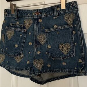 Size 28 color be mine. Super cute embroidered Jean shorts. See pics for details. Ships out same day