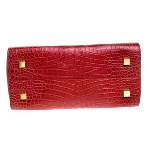 Stunning genuine crimson leather satchel with embossed crocodile texture by Michael Kors. Ideal for everyday or stylish outings. Features crocodile embossed exterior, smooth black linterior, gold plated zippers, gold plated buckles and gold plated logos. Michael Kors dust included. Really gorgeous!
