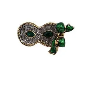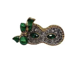 Swarovski Crystal Green Enamel Mardi Gras Mask Lapel Pin Tie Tack Signed READ!
