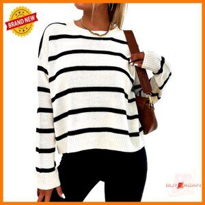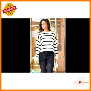 Brand new with tags and in flawless condition — this chic striped knit sweater offers an effortlessly cool, oversized look perfect for casual days, autumn outings, or cozying up on the go. The fit is relaxed and comfortable, with a soft, slightly stretchy fabric that feels great against the skin.