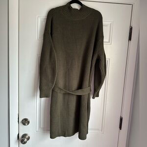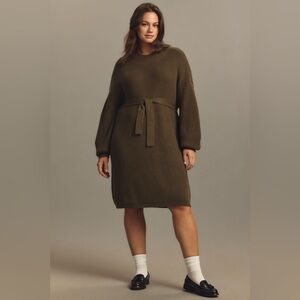 NWT Maeve Anthropologie size 1X Long-Sleeve Mock-Neck Tie-Waist Mini Dress green