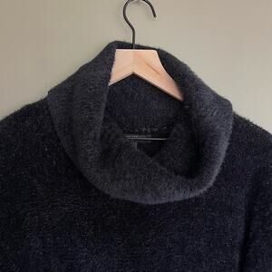 BANANA REPUBLIC EYELASH SWEATER DRESS Black Size Medium Turtleneck Classic Chic