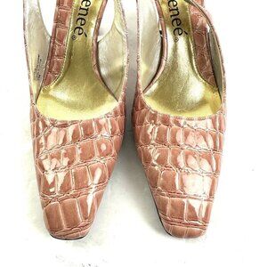 J Renee Tandra Heel 7 Pale Pink Croc. Embossed Slingback Shoes Womens Brand New.