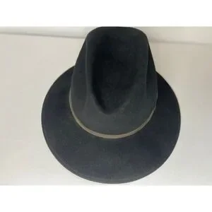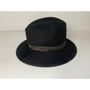 Black Felt Fedora Hat With Brown Band 100 Percent Wool