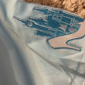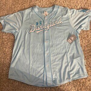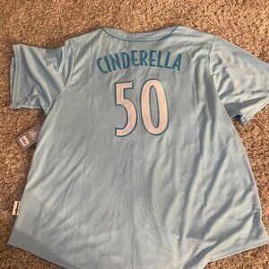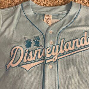 ✨ New with tags Disneyland Resort Disney Parks Cinderella baseball jersey. Features “Cinderella 50” name-and-number design on the back, embroidered Jaq & Gus on the front, soft pastel blue colorway, and breathable perforated fabric. Adult XL.