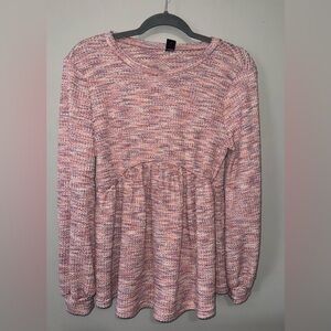 Sweet, comfy, and bump-friendly 💕 This SHEIN maternity top is a women’s size small and features a soft waffle-knit texture in a pretty pink blend. Designed with a flattering empire waist/babydoll style that drapes beautifully over a growing bump while still working postpartum. Long sleeves make it perfect for cooler days, and the lightweight, stretchy fabric keeps it comfy for lounging or everyday wear. Gently preowned and in great condition—no major flaws noted. Easy to dress up with jeans or keep casual with leggings 🤍 From a smoke-free, pet-friendly home.