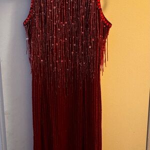 Elegant Red Fringe Dress Beaded w/ Sequins ❤️