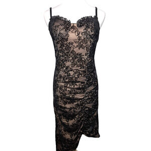 Y2K Dark Fairy Whimsigoth Flocked Velvet Lace Ruffle Corset Bodycon Midi Dress