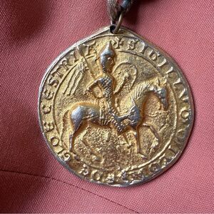 This incredible necklace is beyond stunning. It's from the 70s but molded off coins from the medieval time period. It's in great condition and made of metal.