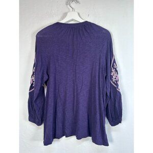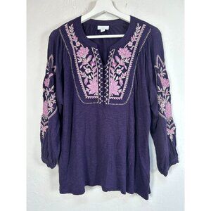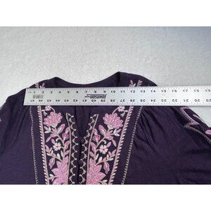 J.Jill Women Feminine Floral Embroidered Top Blouse Small Purple 3/4 Sleeve Boho