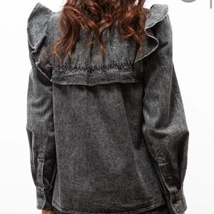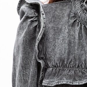 Chic gray denim top with puff sleeves. Perfect for casual outings.