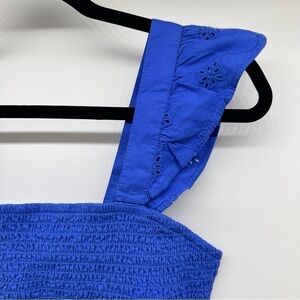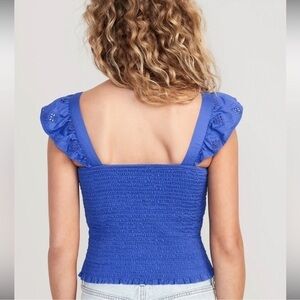 Old Navy Fitted Ruffle-Trim Smocked Cropped Top Batik Blue Size Medium