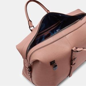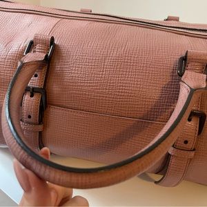 This Duffel Pink Leather Weekend Bag is ready to go places.